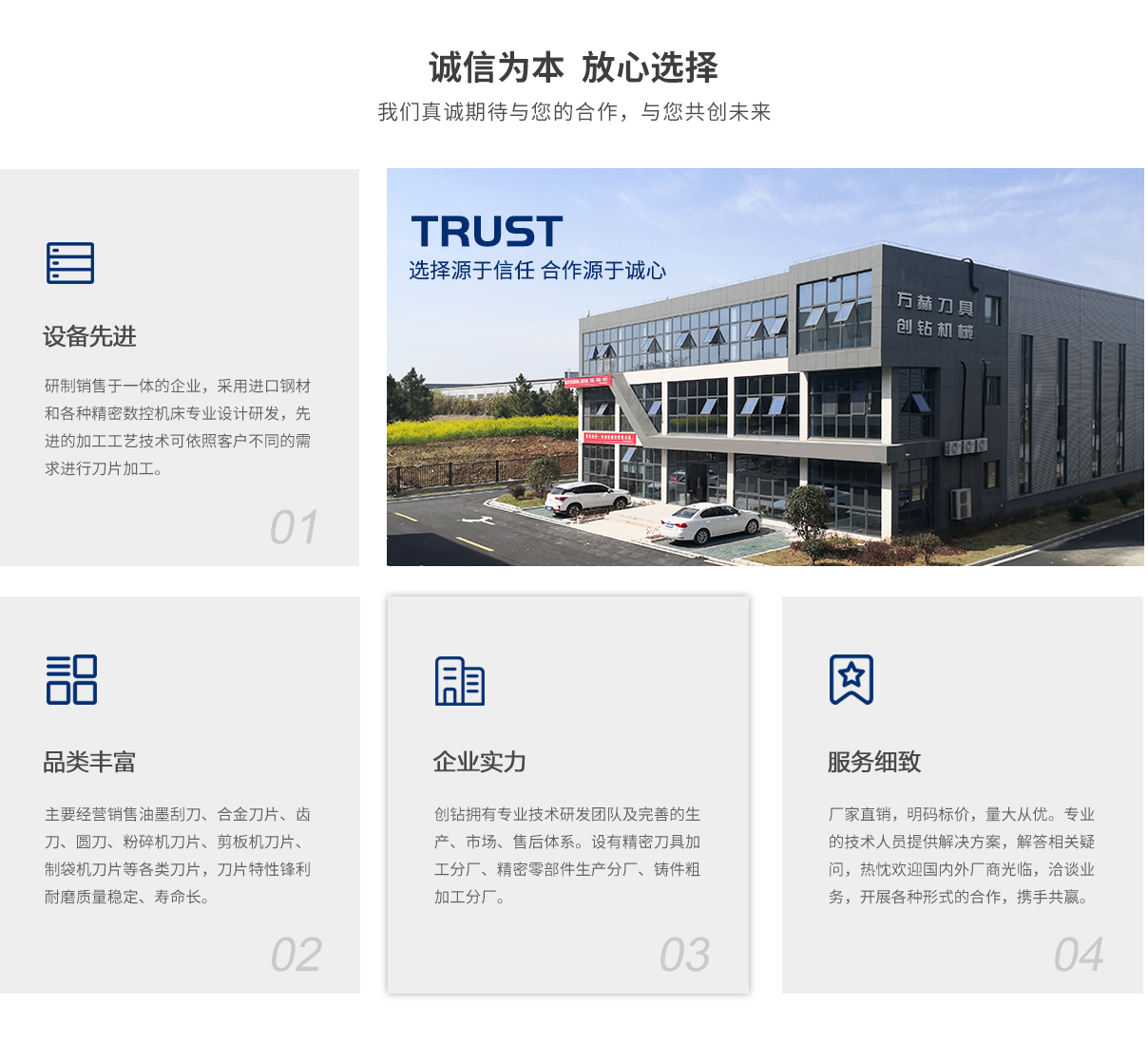 馬鞍山創(chuàng)鉆機(jī)械科技有限公司 INTRODUCTION 馬鞍山市創(chuàng)鉆機(jī)械科技有限公司(創(chuàng)鉆機(jī)械)坐落于鋼鐵之城-安徽馬鞍山,公司擁有專業(yè)的技術(shù)研發(fā)團(tuán)隊(duì)及完善的生產(chǎn)、市場(chǎng)、售后體系。公司設(shè)有精密刀具加工分廠、精密零部件生產(chǎn)分廠、鑄件粗加工分廠,...
